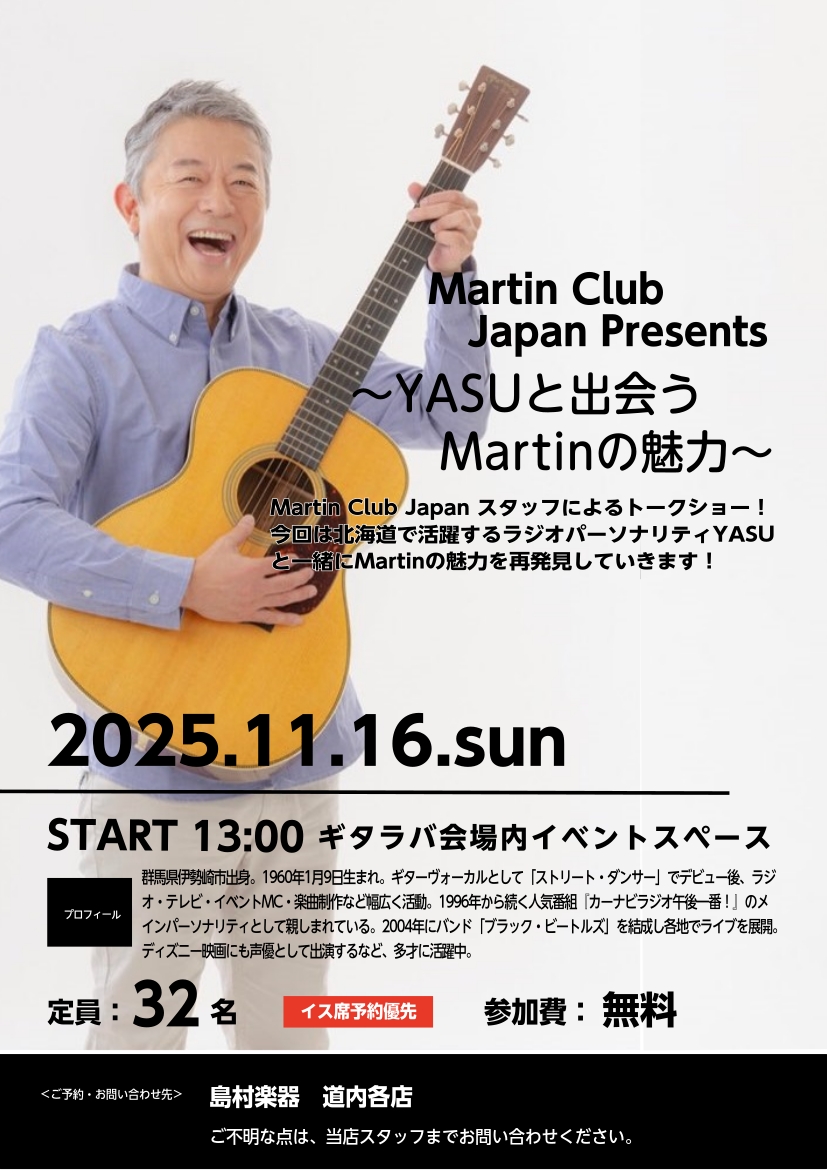 島村楽器札幌パルコ店様から出演依頼をいただきました!ギター好きの方もこれからはじめたい方も是非ご予約の上ご来場ください♪
